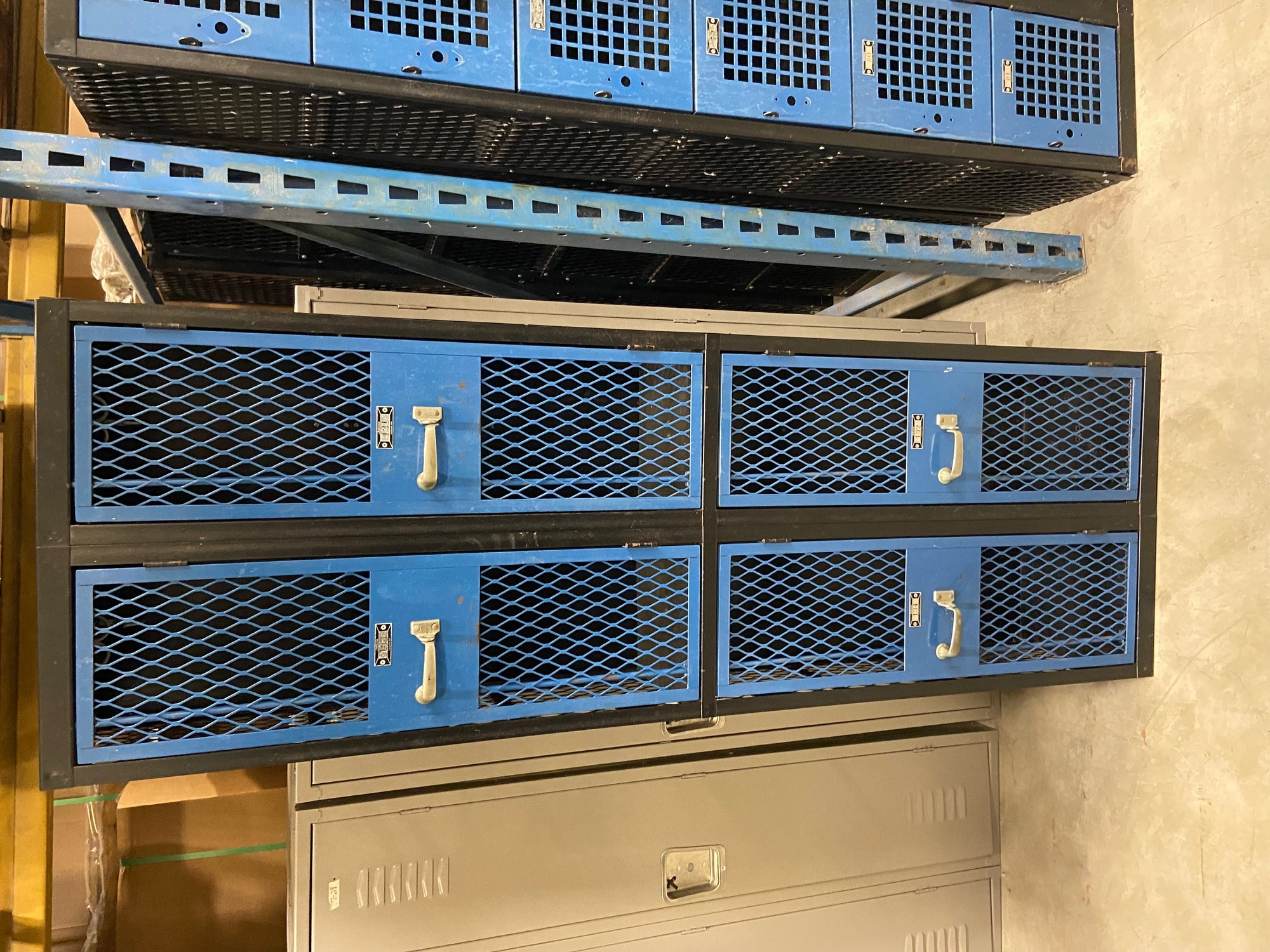 Black frame and body, blue doors